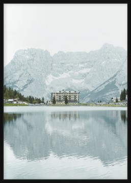 Reflection Of Hotel In Majestic Dolomite Mountains
