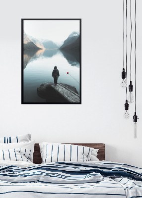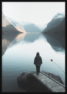 Person Standing On A Pier At Lake Lovatnet In Norway